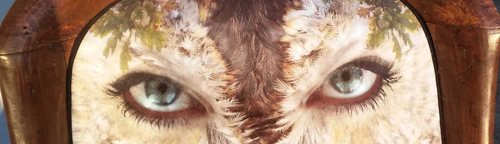 Blodeuwedd-eyes-1000×288 Published July 21, 2017 at 1000 × 288 in Blodeuwedd-eyes-1000×288 Blodeuwedd chair close-up Close-up of my Blodeuwedd chair, created to celebrate the 50th anniversary of the publication of Alan Garners The Owl Service